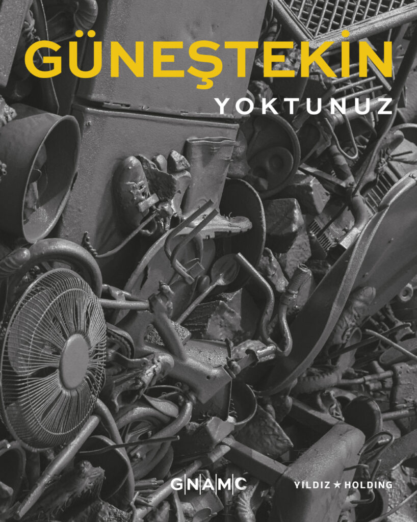 Yoktunuz sergisi kapsamında yayımlanan kitap, Roma Ulusal Modern ve Çağdaş Sanat Müzesi’nin genel direktörü Renata Cristina Mazzantini’nin önsözüyle açılıyor. Mazzantini, politik ve toplumsal meselelerle derinden bağlantılı bir kültürel strateji izleyen Güneştekin’in, trajedinin teatralliğini ortaya çıkarmak için alışılmadık bir kompozisyon disiplinini nasıl kullandığını tartışıyor. Sergio Risaliti, Gerekli Melek başlıklı küratöryel yazısında, yönünü kaybetmiş bir dünyada sanatın değişen rolüne bakarken, sanatçının çalışmalarının küresel adaletsizlikle yüzleşmeye davet ettiğinden söz ediyor. Walter Benjamin’in Tarih Meleği’ne (Angelus Novus) gönderme yapan sanatı aracılığıyla kırılanı onarmayı amaçladığını belirtiyor. Paola Marino, sanatçıya dair yedi maddelik yazısında, üretiminde öne çıkan tema ve düşüncelere bakıyor, serginin kapsadığı farklı mecralara odaklanıyor ve bu öğeler üzerinden sanatçının estetik duyarlılıklarını araştırıyor. Küratörlerin sanatçıyla yaptığı derinlemesine söyleşi, çocukluğun florasından, sanatçının pratiğinin tanımlayıcı unsurları haline gelen form ve mitolojik referansları bir araya getiren ilk sergisine; sayısal kültürün sanatsal pratikler üzerindeki etkisinden, sergilerin yüzleşme ve dönüşüm alanları olarak ortaya çıkışına, malzemeler ve anlamlar arasında yeni bağlantılar kurulmasına ve sanatçının özellikle restorasyon çalışmaları devam eden Palazzo Gradenigo gibi genişleyen projelerine kadar pek çok konuyu kapsıyor. Artribune dergisinin genel yayın yönetmeni Santa Nastro, müzenin Mars salonunda sergilenmesi planlanan Hafıza Tepesi enstalasyonu üzerinden Yoktunuz sergisinin perde arkasındaki gelişmelere yakından bir bakış sunuyor. Sanatçının, coğrafi engelleri aşan bir perspektifle trajedilerin tarihine ve acının yüküne odaklanan yerleştirmesini, işçi sendikalarından gelen şikâyetler üzerine nasıl hassas bir şekilde dönüştürdüğünü ve farklı bir kurguyla sunulmasına rağmen eserin gücünü korumasını nasıl sağladığını anlatıyor. Güneştekin Vakfı Yayınları tarafından, serginin ana sponsoru Yıldız Holding’in desteğiyle yayınlanan kitaptaki kavramsal metinlere, müzenin daimi koleksiyonuyla birlikte sergilenen sanatçının eserlerinin yerleştirme görselleri eşlik ediyor.